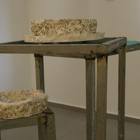 In my high school graduation exhibition, Operation, I chose to explore the connection between sex and death. In doing so, I created a hybrid between a bedroom and an operating room, to connect those themes. This hybrid includes a double operating table with pillows made of wax castings of sterile fabrics; a cold, metallic bedside table; gypsum molds of infusion bags instead of pictures on the wall; and an infusion set that serves as a useless standing lamp. The work offers a parallel between sex and surgery through the variety of possibilities that these experiences offer - healing and severe injury (to the mind or body), separation and reunion, life and death, pleasure and pain. Parts of the exhibition were created spontaneously. For example, the gypsum molds of the wet rags and the infusion bags were supposed to be thrown away, but once mold grew on them they added another dimension to the life-to-death dialogue at work. The mold indicates decay, but is in fact a living creature in itself.